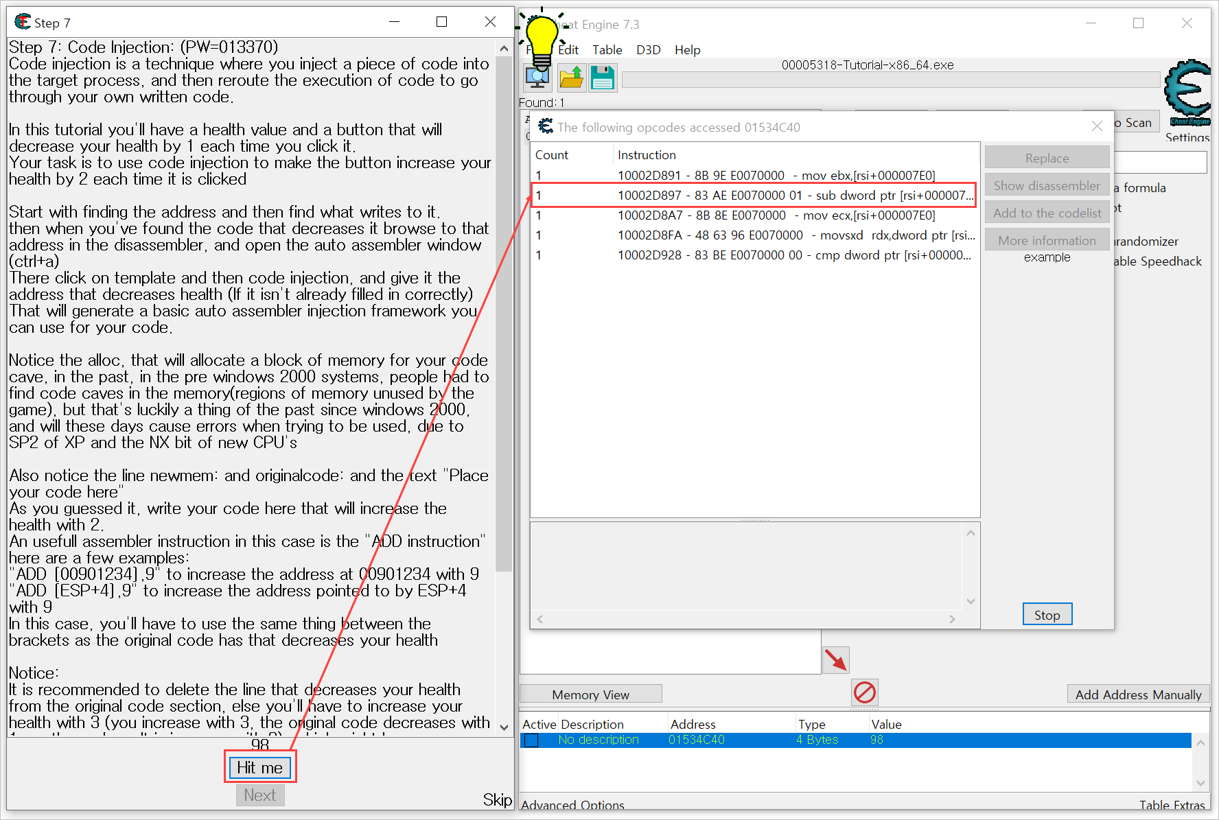 Cheat Engine을 이용한 Code Injection 실습을 진행한다.