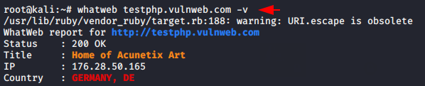 「What Web」도구는, Web 사이트에서 사용되는 서비스와 버전를 특정하기 위해서 사용된다. 배너그래빙 뿐만 아니라 여러 명령 삽입, Active 스캐닝 기능이 존재하므로 이 툴의 기능에 주의해, 다음의 커맨드를 실행해야 한다. 자세한 내용을 보기 위해 "v" 플래그를 사용한다.