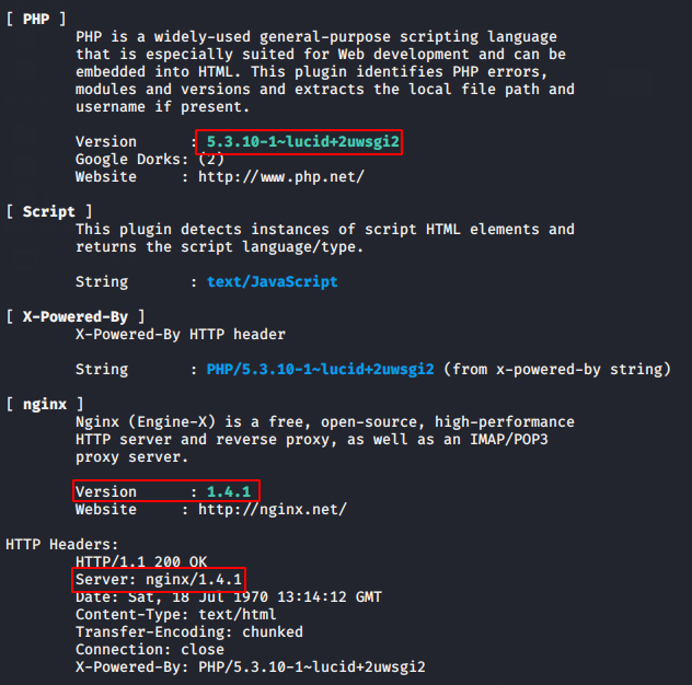 cURL은 다양한 네트워크 프로토콜을 사용하여 데이터를 전송하기 위한 라이브러리와 명령줄 도구를 제공한다. 이 툴을 사용해 HTTP 서버로부터 배너로부터 버전정보를 얻을 수 있다. "-s" 플래그는 "사일런트 모드"를 나타내고 "I" 플래그는 "문서 정보만 표시"를 나타낸다.